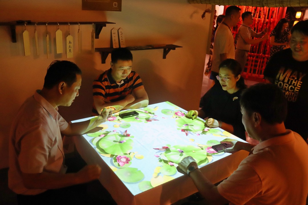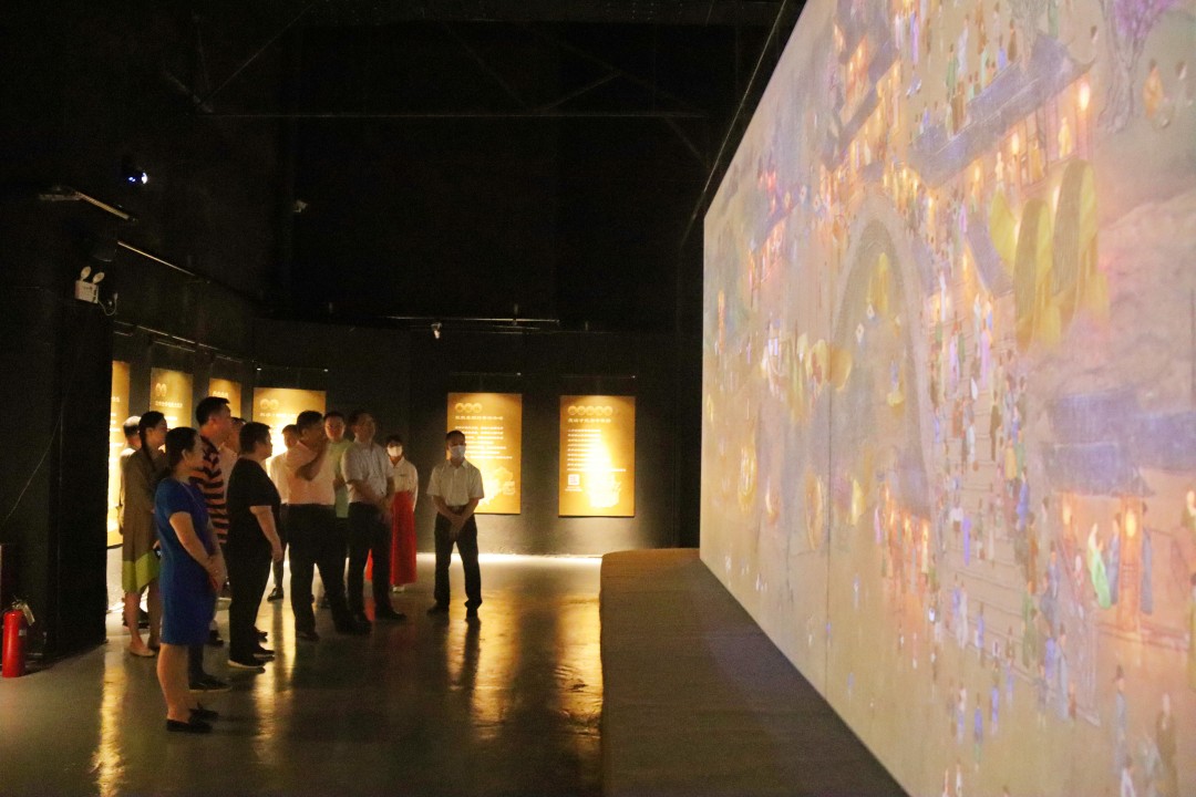 考察團一行先后參觀了清明上河圖科技藝術沉浸特展的各個展廳的代表性科技藝術項目。在“得意江山在眼中”展廳中,長25.8米高3.3米的清明上河圖全息活態長卷讓考察團受到震撼,大家紛紛表示贊嘆不已。