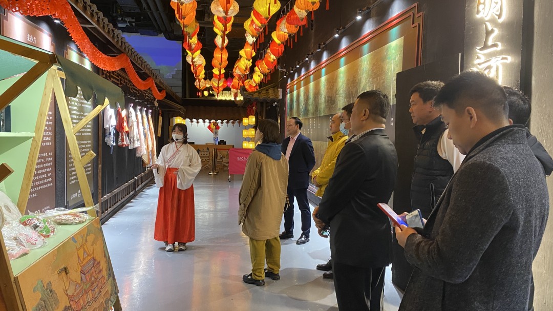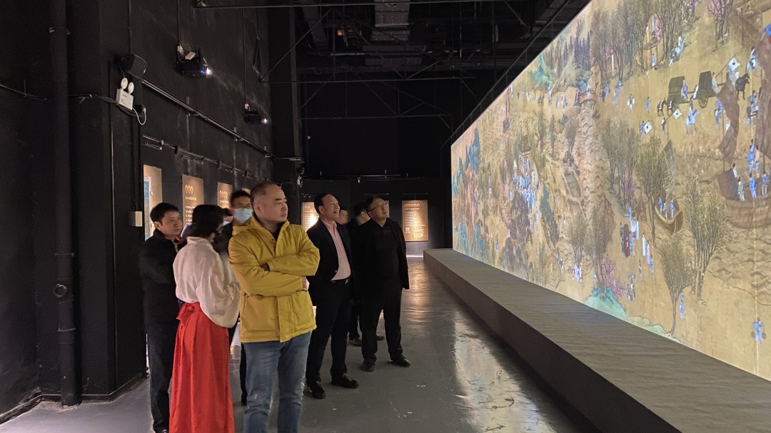 近日,祖龍集團合作伙伴前來ACMALL科技藝術中心參觀《清明上河圖》科技藝術沉浸特展。在特展上,祖龍集團負責人張祖龍董事長以及合作伙伴跟隨講解員了解《清明上河圖》的故事以及相關的趣事。